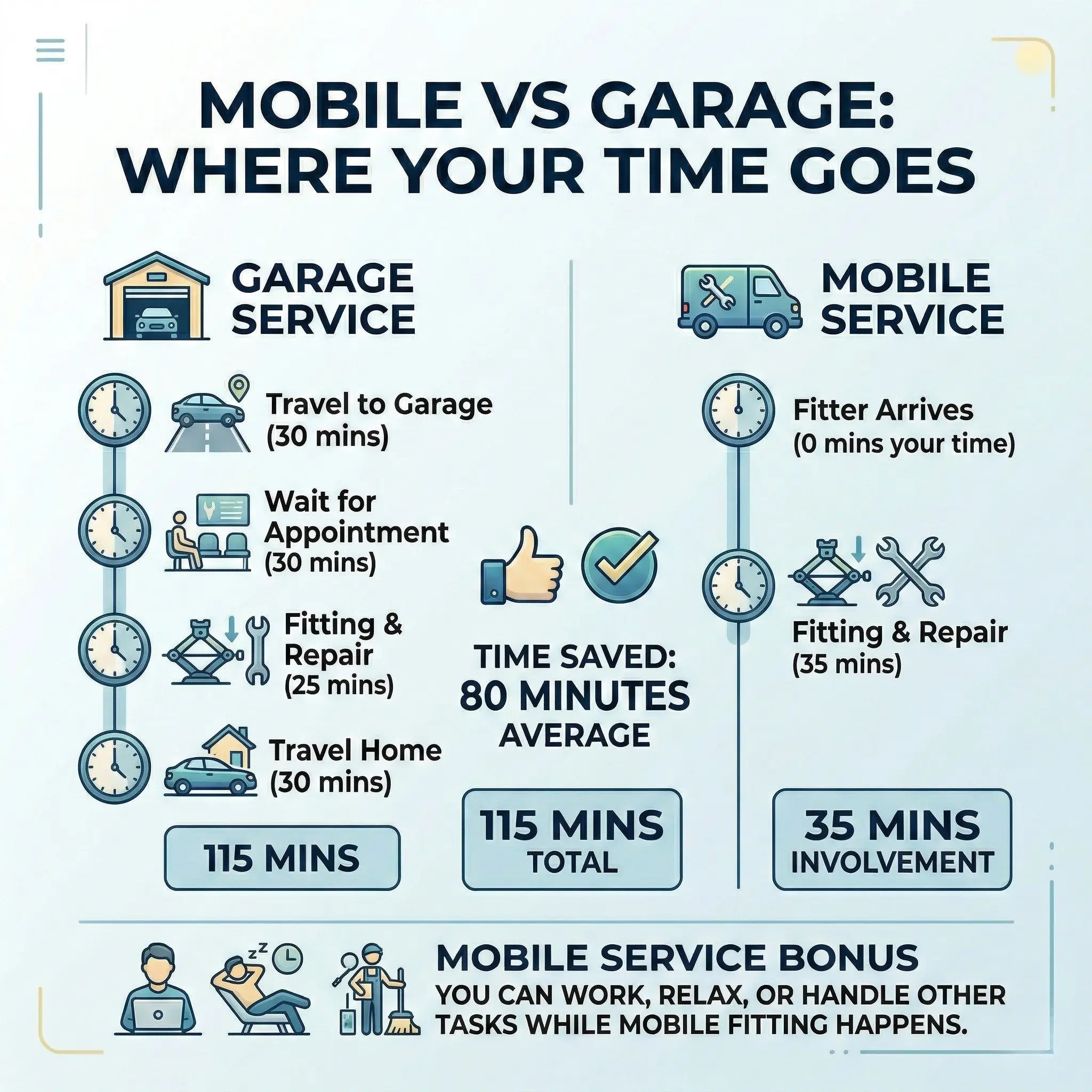 For straightforward tyre replacements? Mobile fitting is usually faster and more convenient.