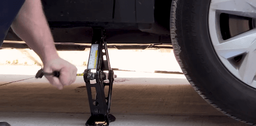 Step 7: In the end, lower the car completely and remove the jack. Collect your equipment and place them in their right place before driving forward.