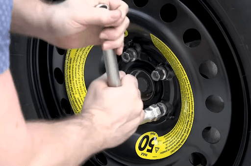 As a final safety tip, measure the spare’s air pressure with a gauge. Temporary or T-Type tyres often have 60 psi (420 kPa) pressure. If the tyre has less pressure, drive to the nearest service station.
